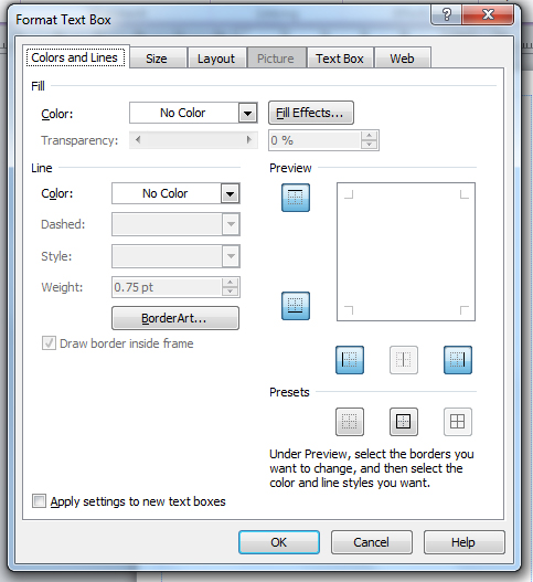 that when you create a Text Box you right click on it and select 'Format Text Box' from the menu, then under the 'Colors & Lines' tab ensure that 'Fill' & 'Line' are set to 'No Color'. This assumes that you do not want a coloured background or border to your text! If you do want a coloured background to highlight an area of your text use a tint of 10% - 20% to fill your text box.